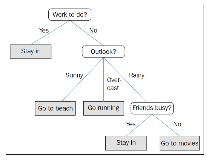 - 决策树通过基于每个层次的多个问题做出决策来分解数据