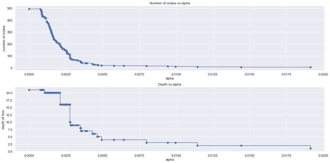 当CCP值较低时,会创建更多的节点。节点越高,树的深度也越高。