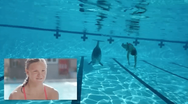 这位和海豚一起游泳的姑娘也没发现这一点。她惊讶的说道,“当我第一次看到这个海豚的时候,我以为它是真的。”她还说,“我和海豚一起游泳,模仿了它身体的律动,就像我们从海豚身上看到的一样。我认为这有助于更多地了解海豚,了解它们的生活方式。”