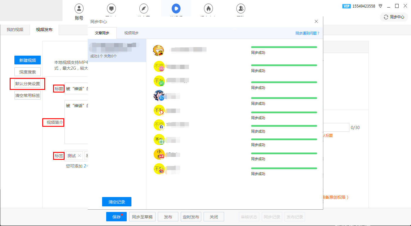 接着来操作如何一键发布视频,点一下发视频这里(在软件很明显的位置),大家最好将默认分类先填好,再本地上传下想发的视频,然后就是在输入框填写简介标题标签。填完了就,先点击下“发布”端口(可下载看下具体位置),就进入可以选择账号的地方,选中要更新的平台,就一键群发搞定了,这么做每天能节省很多时间。