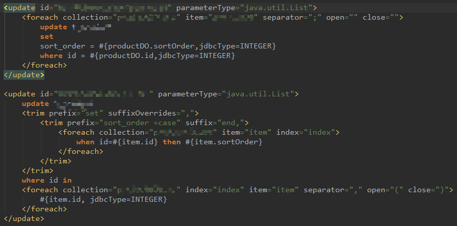 两种方式: 1) 方式1: 执行时也是多条SQL, 分号分隔, 批量执行,这种方式需要在jdbcUrl后面加上配置allowMultiQueries=true 2) 方式2: 通过case when的方式, 执行时是一条SQL 来源:oschina链接:https://my.oschina.net/liwanghong/blog/4306705 标签 MyBatis