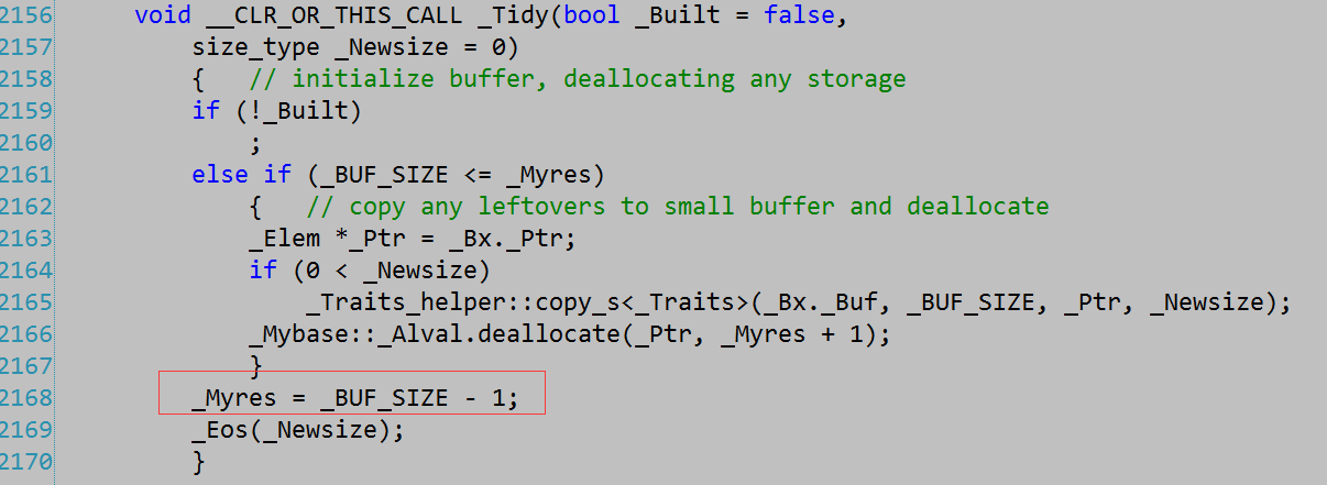 构造的时候先调用_Tidy方法,将成员变量_Myres = _BUF_SIZE - 1;