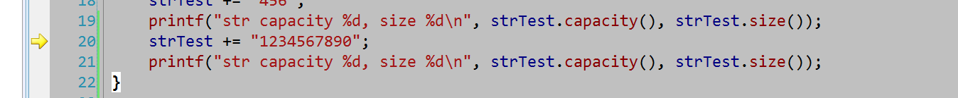 printf("str capacity %d, size %d\n", strTest.capacity(), strTest.size()); -