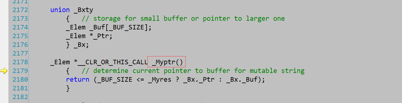 在取字符串地址的时候我们都用的是_Myptr方法,而这个方法会根据当前字符串的容量返回两个不同的值,这两个值一个是数组存储的一个是指针,很明显可以得到结论,当字符串长度小于等于15的时候是存放在栈里的,而当字符串长度超过15到时候,又会转移到堆里面。