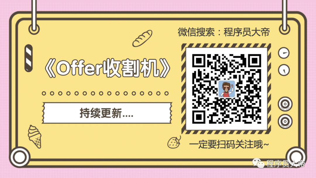 最后欢迎关注公众号「程序员大帝」,《Offer收割机》系列持续更新~