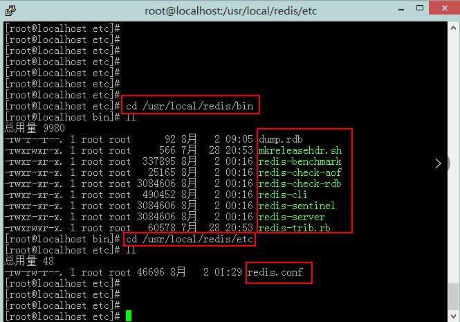 mkdir –p /usr/local/redis/bin 放命令 mkdir –p /usr/local/redis/etc放配置文件