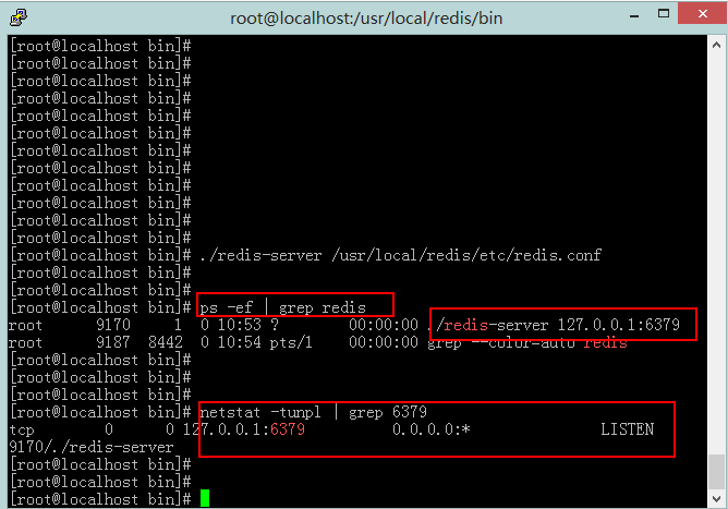 ps -ef | grep redis 查看是否启动成功 netstat -tunpl | grep 6379 查看该端口有没有占用 结果如下:可以看出,redis启动正常。