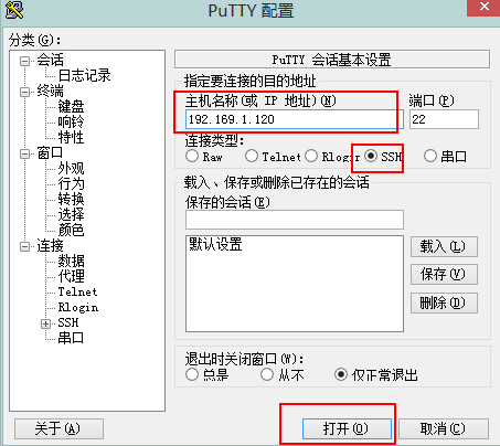ping通了说明可以使用putty来链接虚拟机了(当然了,也可以不使用putty,直接在CentOS的命令行操作也行,所以这一步不是必须的),打开putty输入虚拟机的ip地址,然后输入用户名和密码即可连接上: