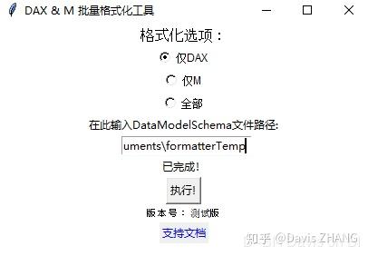 打开“DAX & M批量格式化工具”后将路径粘贴到输入框,然后点击“执行”,等待几秒钟后会提示“已完成”: