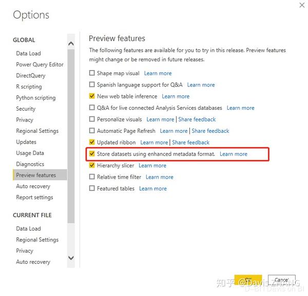 基于作者本人的Desktop版本(2020年5月),此时需要在预览功能处勾选如下功能,然后重启Power BI Desktop: