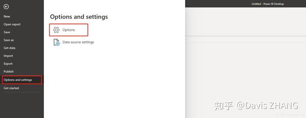 第一次使用,需要多一个小步骤,打开Power BI Desktop, 打开选项: