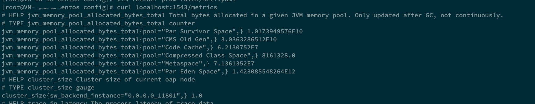 可以在本地验证:curl localhost:1543/metrics会列出很多指标: