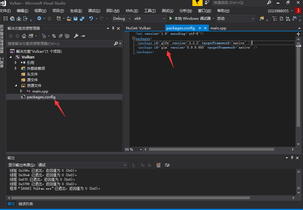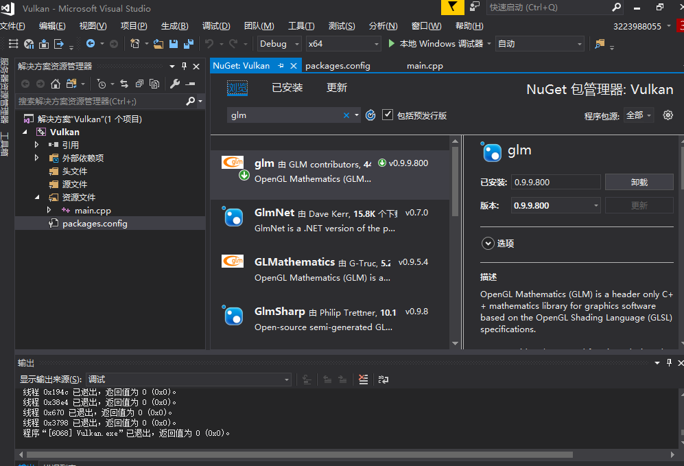 2.使用Nuget管理:新建packages.config,并使用NuGet程序管理下载glm+GLFW: