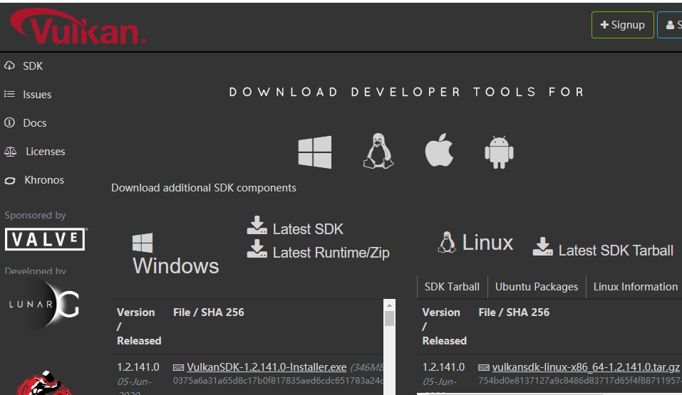 下载网址 https://vulkan.lunarg.com/sdk/home,选择Windows平台下的最新SDK下载安装。