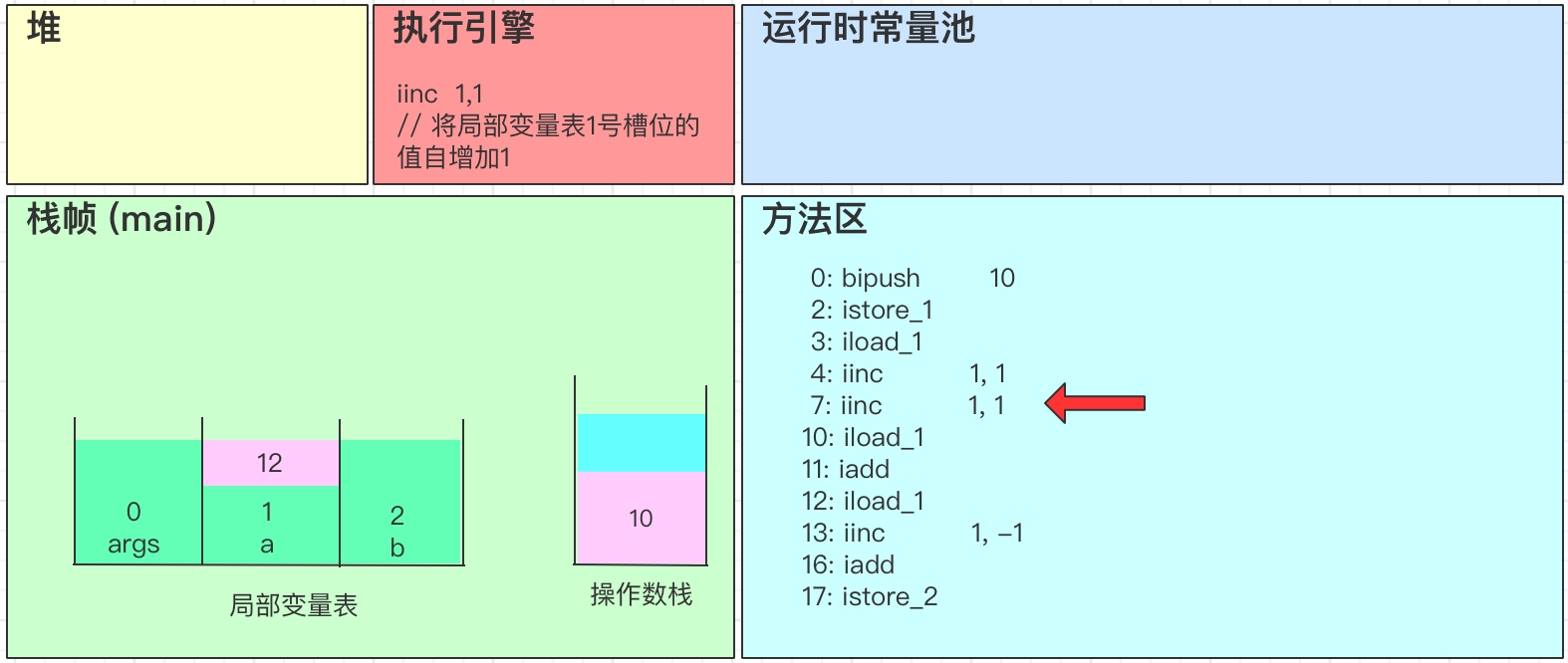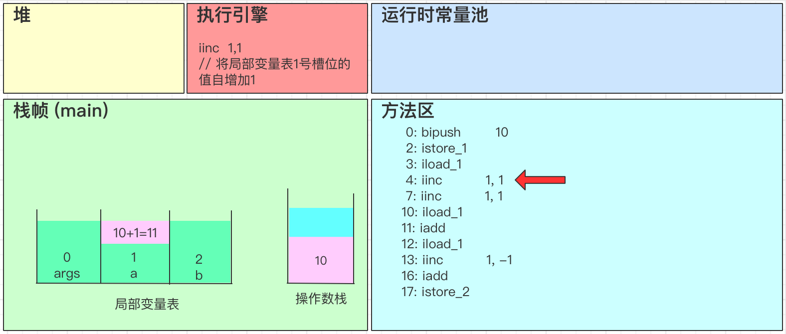 再接着执行++a自增1操作,这个操作也是在局部变量表中完成的