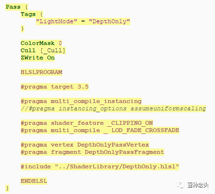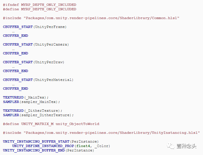 DepthOnly.hlsl是Lit.hlsl的副本,其中删除了所有不影响深度的数据。