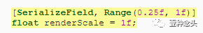将渲染比例的滑块添加到MyPipelineAsset,初始范围为?~1。将分辨率降低到四分之一会使质量下降很多(像素数除以16),并且除非原始分辨率很高,否则很可能无法接受。