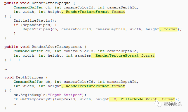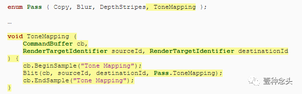 它是通过自己的过程完成的,因此为其添加一个枚举值和方法,最初只是使用其自己的探查器样本进行涂抹。设置源ID和目标ID参数RenderTargetIdentifier,以便我们可以灵活地传递给它。