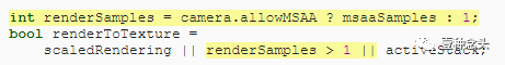 每个相机都设置了MSAA支持,因此请在“Render”中跟踪用于渲染的样本,如果相机未启用MSAA,则将其强制为1。然后,如果最终每个像素有多个样本,则必须渲染为中间的多采样纹理,简称MS纹理。