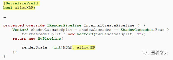 通过向MyPipelineAsset添加“Allow HDR”切换,将其传递给管道实例,使我们的管道是否支持高动态范围渲染成为可选。