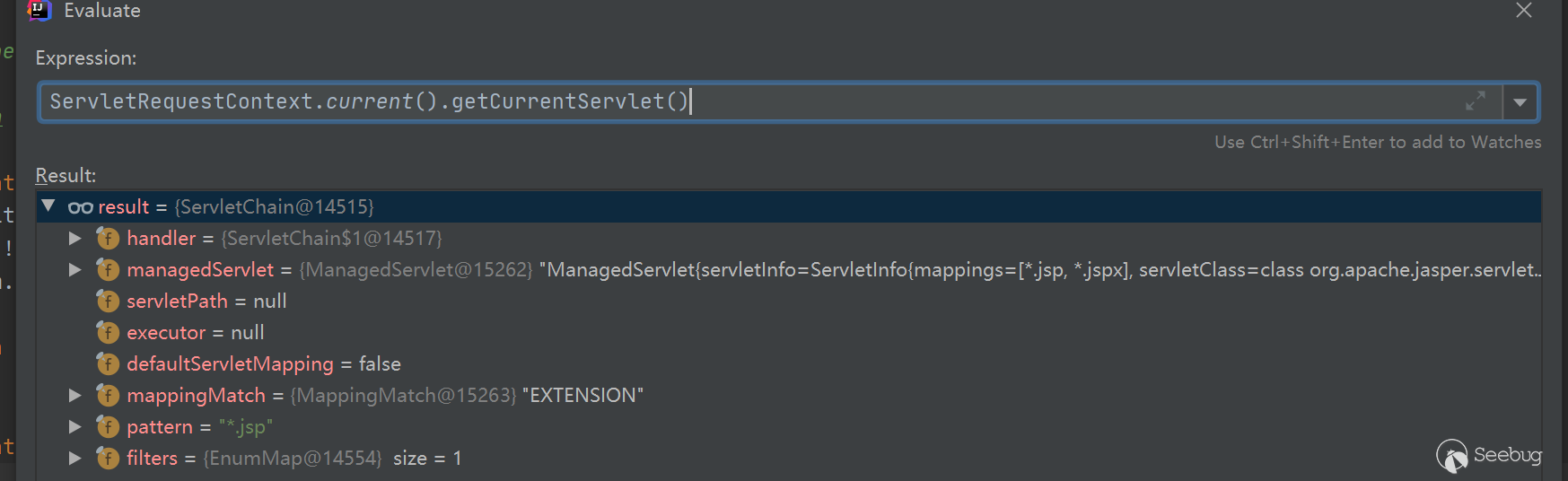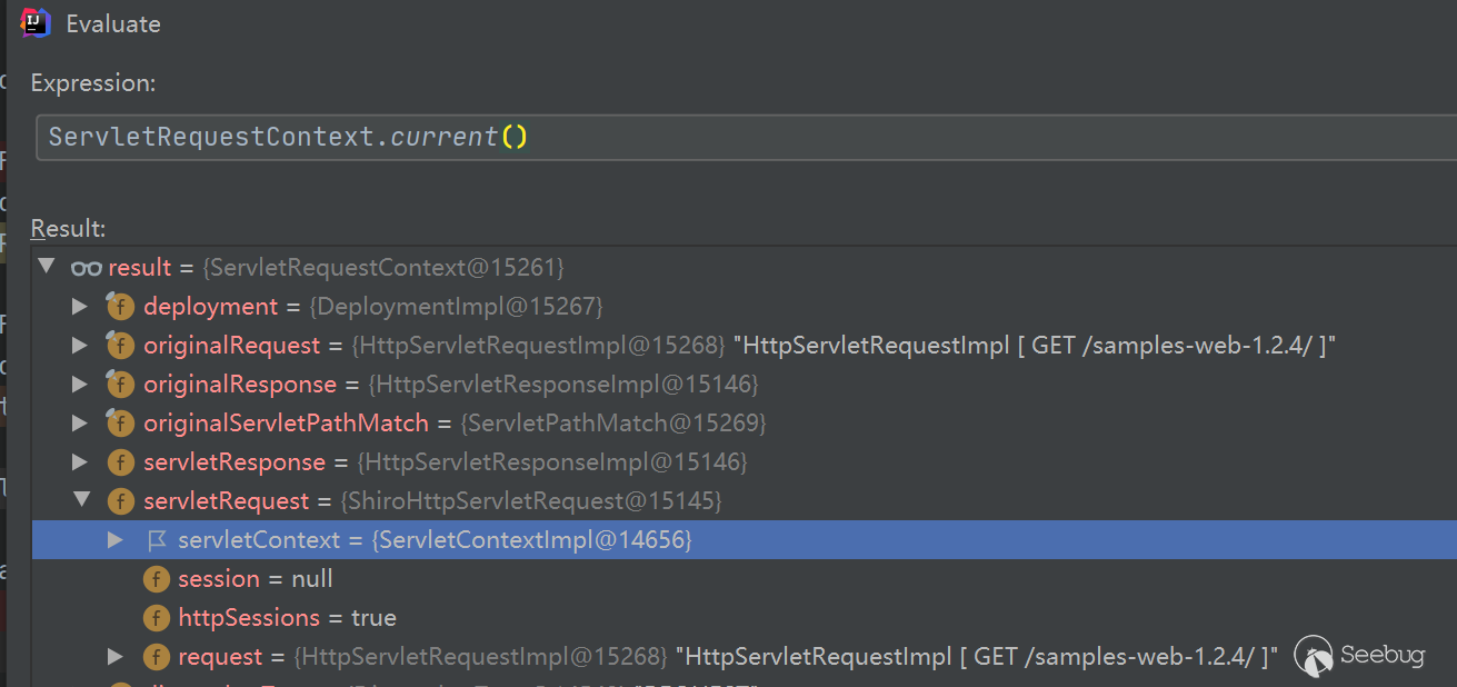 通过ServletRequestContext.current这个静态方法,可以获取当前的ServletRequestContext对象。ServletRequestContext对象中,恰好存放我们需要的ServerChain对象。