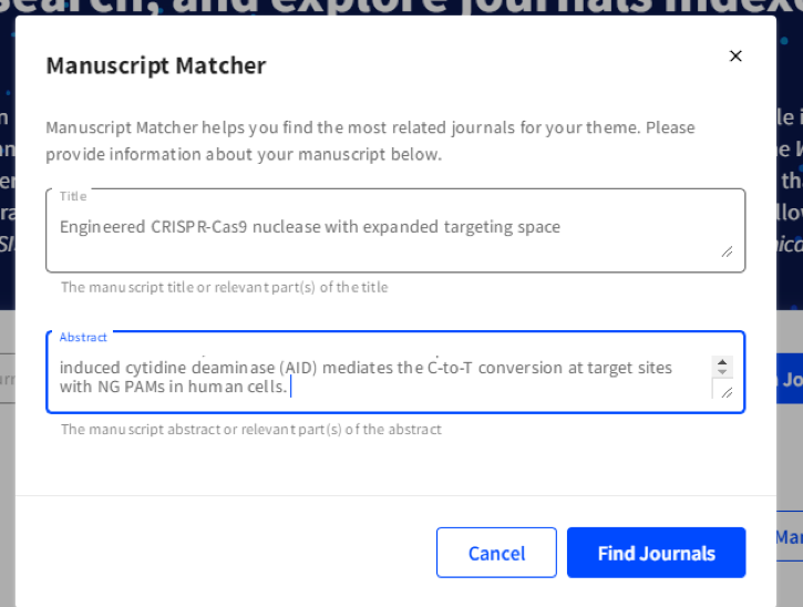当然,除了根据自己已经成文的manuscript来寻找合适的期刊,你也可以直接通过网站左上角的【Search Journals】功能直接去搜自己感兴趣的期刊。