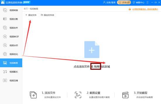 第一步:百度搜索下载迅捷视频转换器,打开软件后可见如下界面,鼠标点击“视频截图”即可,上面除了视频截图功能还有其他八个功能。