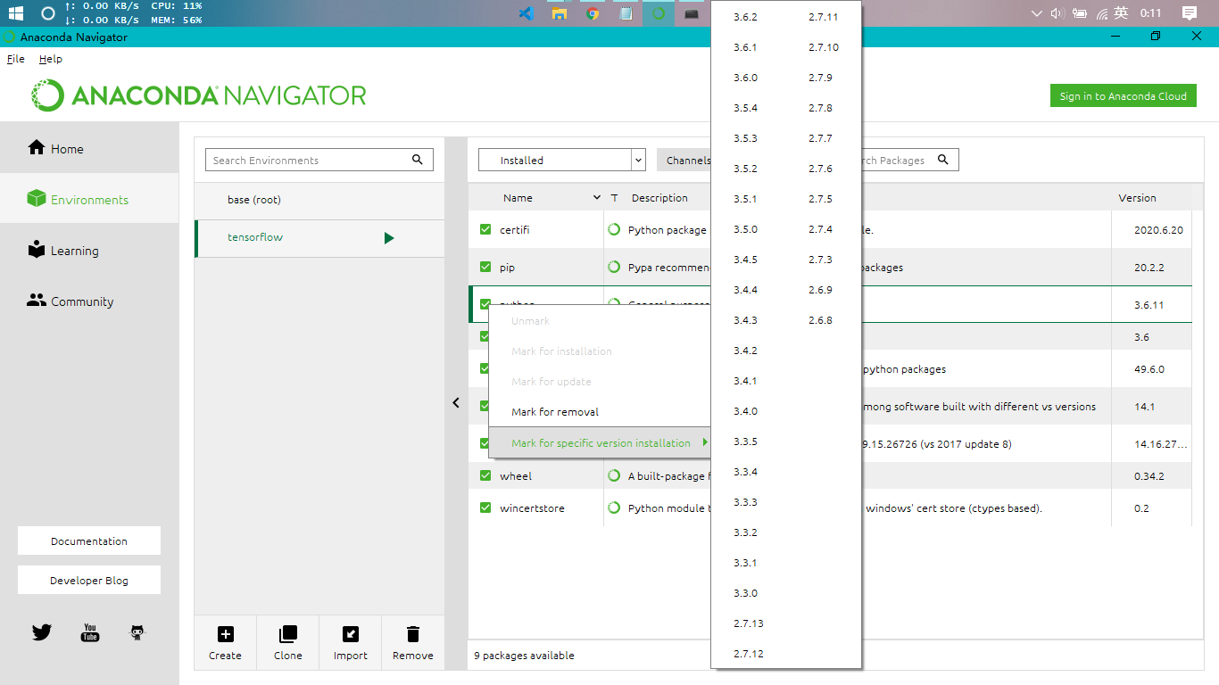 conda create -n tensorflow python=3.6激活tensorflow环境。 输入:activate tensorflow输入:python --version,查看是否切换到python3.6 工作环境 - 配置国内镜像: