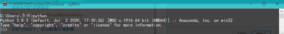 安装完毕后打开'cmd'输入'python',如下图即安装成功
