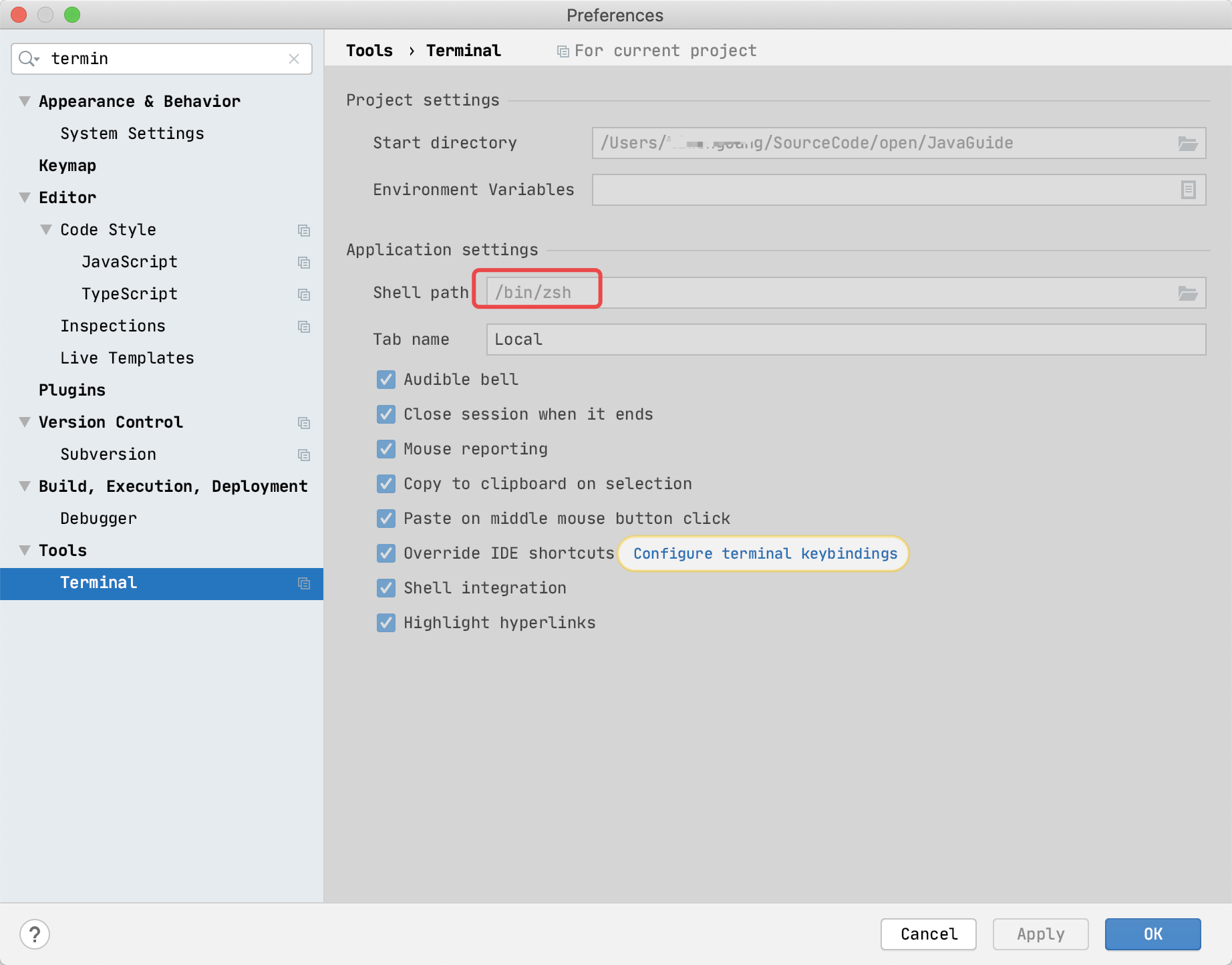 当安装了 zsh 后,你可以在 vscode/idea 软件中切换默认的 shell