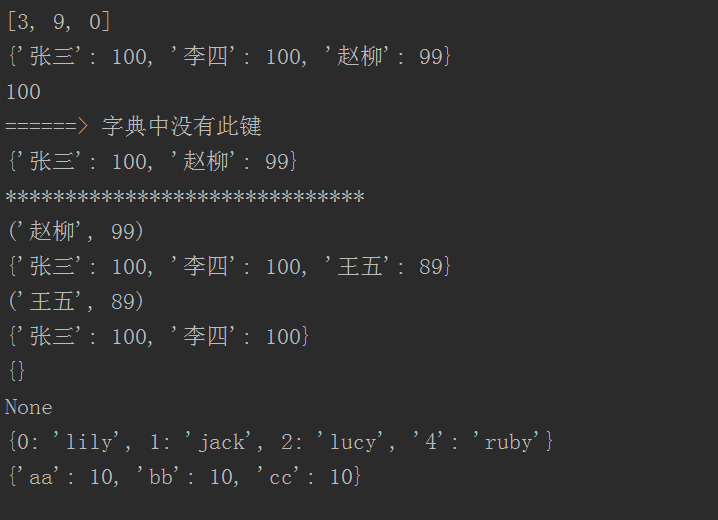 dict1 = {'张三':100,'李四':100,'王五':89,'赵柳':99}