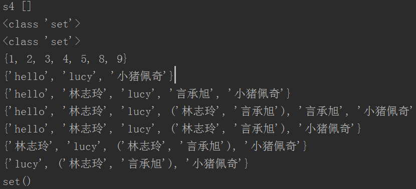s1.update(t1) # {'hello','林志玲',....}#这个向里面添加多个元素的