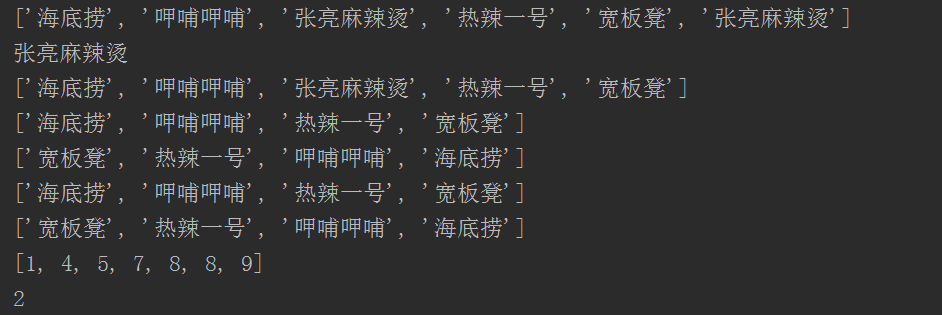 hotpot_list = ['海底捞','呷哺呷哺','张亮麻辣烫','热辣一号','宽板凳']