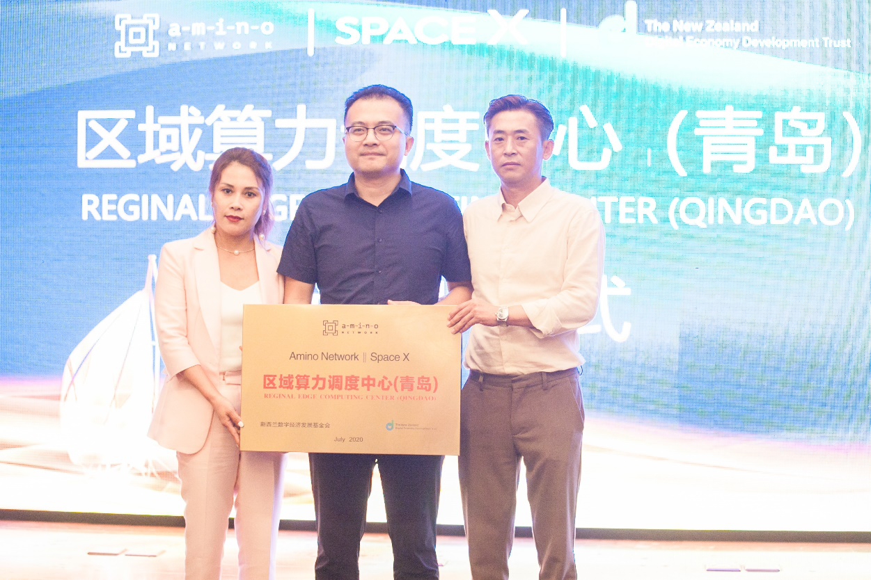 本次会议中,Amino Network 全球生态企业杭州云哟科技CEO李皓霖做了《5G边缘计算网络——从基础设施到应用》主题演讲,阐述了Amino Network项目发展历程、十年科研产业化成果、丰富的商用生态体系、项目未来长远战略规划等。Amino Network全球运营中心重庆链米科技CEO夏丹和COO胡迅分别从项目发起初衷、未来发展前景、市场策略等多角度对Amino 项目做了深度剖析,共建Amino,助力新基建,共同定义边缘计算的未来。现场为听众演示云游戏云直播等应用场景,讲解SPACE X操作流程,还举办了青岛区域算力调度中心授牌仪式,正式打响了百城奠基行的第一枪!