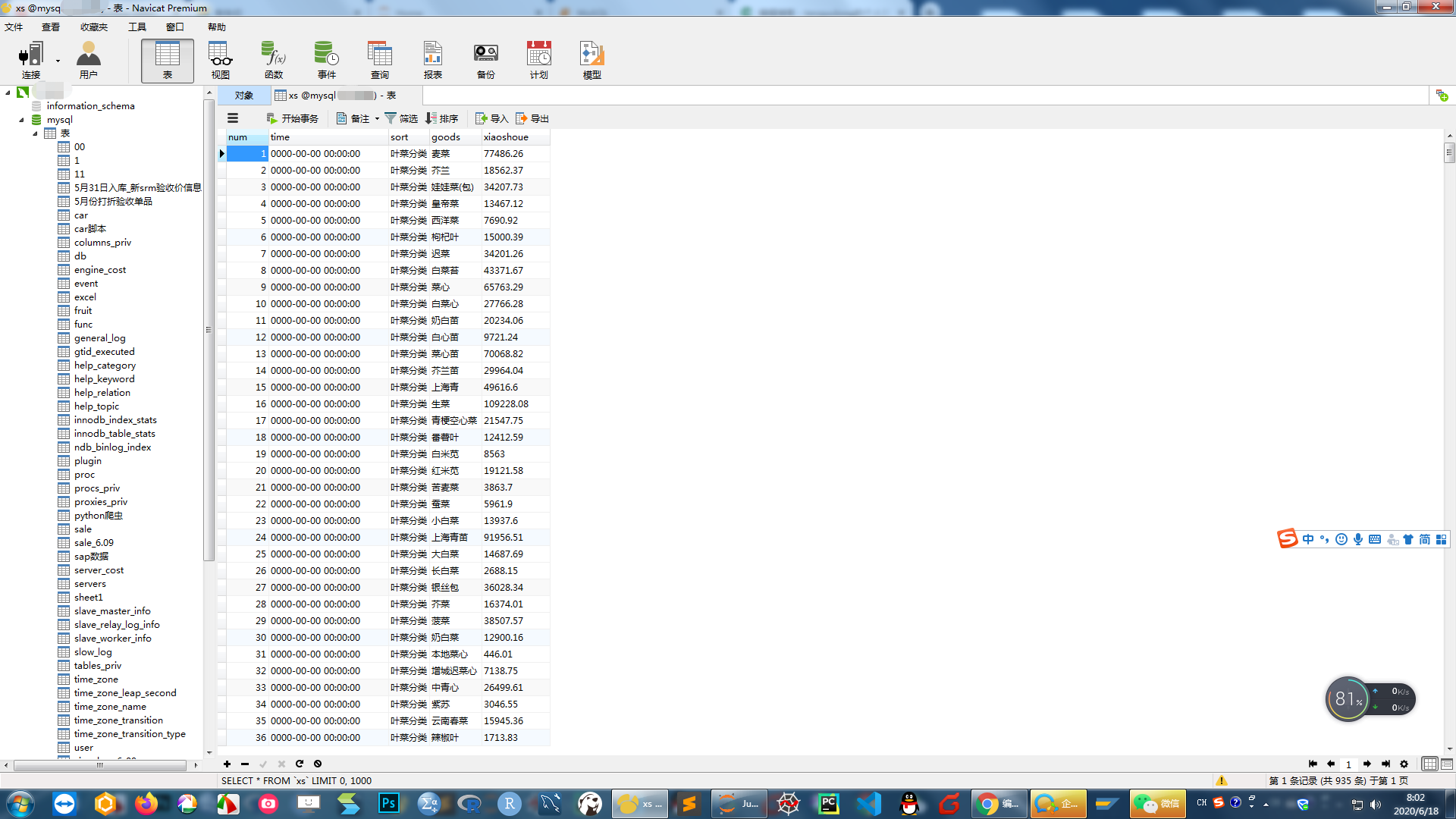 # 注:xs是所要读取的表名称,且不管表名称是因为还是中文字符,都不用另外添加双引号或单引号