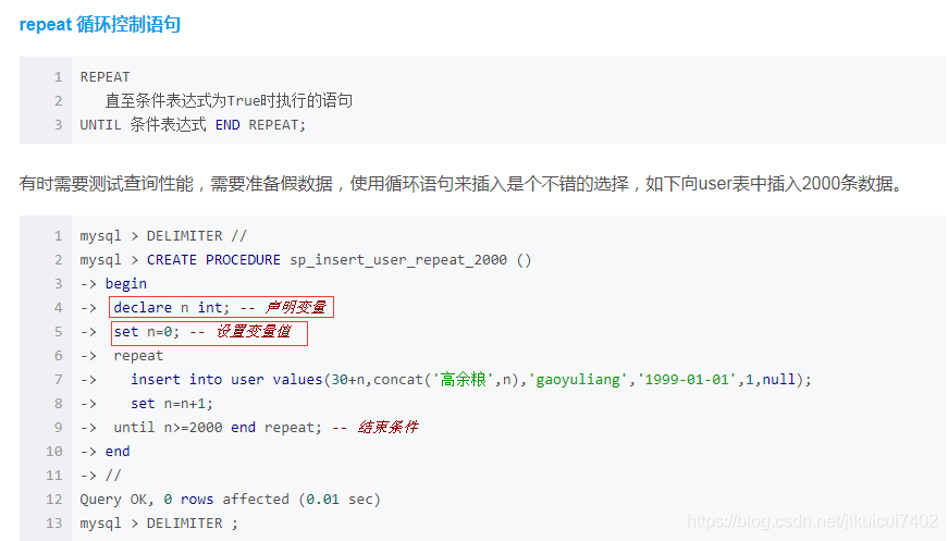 **1.**REPEAT 直至条件表达式为True时执行的语句 UNTIL 条件表达式 END REPEAT;