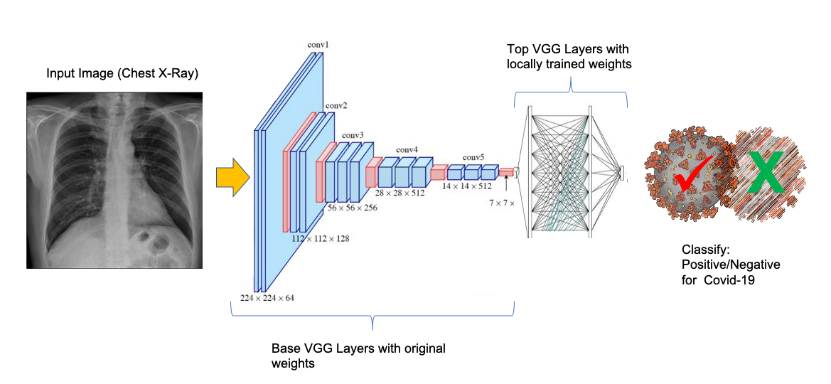 CNN类型的网络通常需要一个广泛的数据集才能正常工作。但是,在这个项目中,应用了一种称为“迁移学习”的技术,在数据集很小的情况下非常有用(例如Covid-19中患者的图像)。