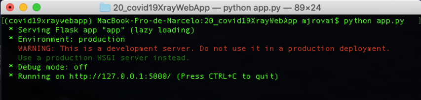 conda activate covid19xraywebapp