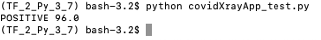 到目前为止,所有的开发都是在Jupyter Notebook上完成的,我们应该做最后的测试,让代码作为python脚本运行在最初创建的开发目录中,名称为:covidXrayApp_test.py。