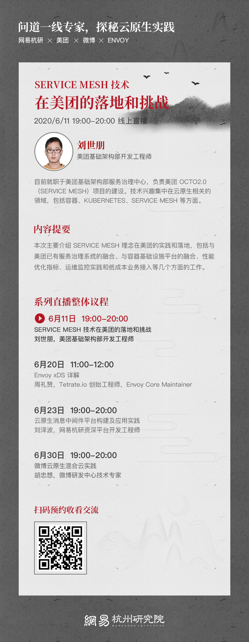 网易杭研举办本次“问道一线专家,探秘云原生实践”系列在线技术沙龙活动,邀请 Envoy 社区 Core Maintainer 及网易杭研、美团、微博等知名互联网公司一线专家联袂分享,解读云原生技术演进趋势,介绍云原生落地应用的经验心得,实践过程中遇到的典型问题及解决之道。