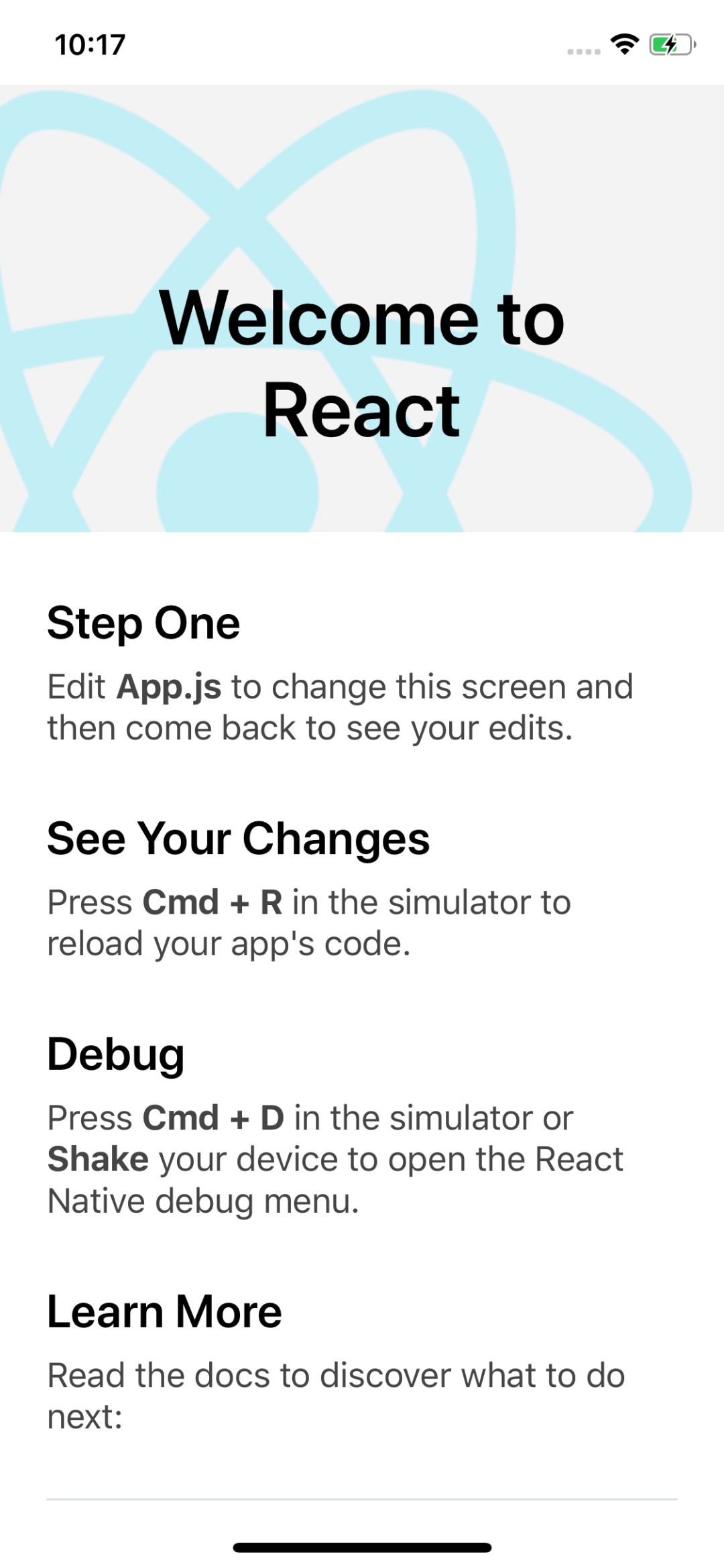 官方RN Demo应用的欢迎页面: