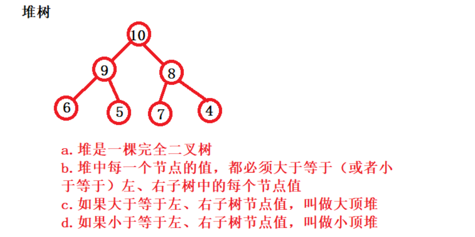 d.如果小于等于左、右子树节点值,叫做小顶堆