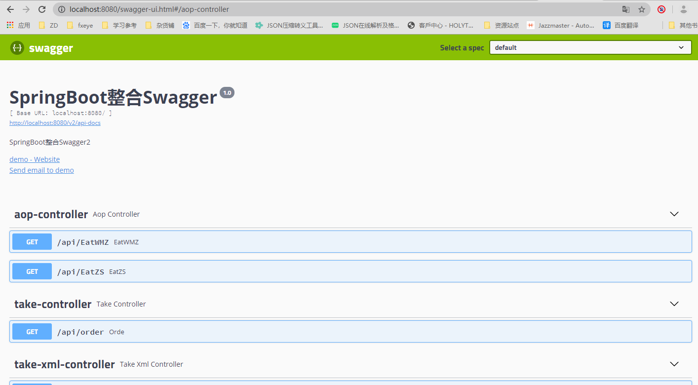 运行项目,查看swagger2文档:http://localhost:8080/swagger-ui.html