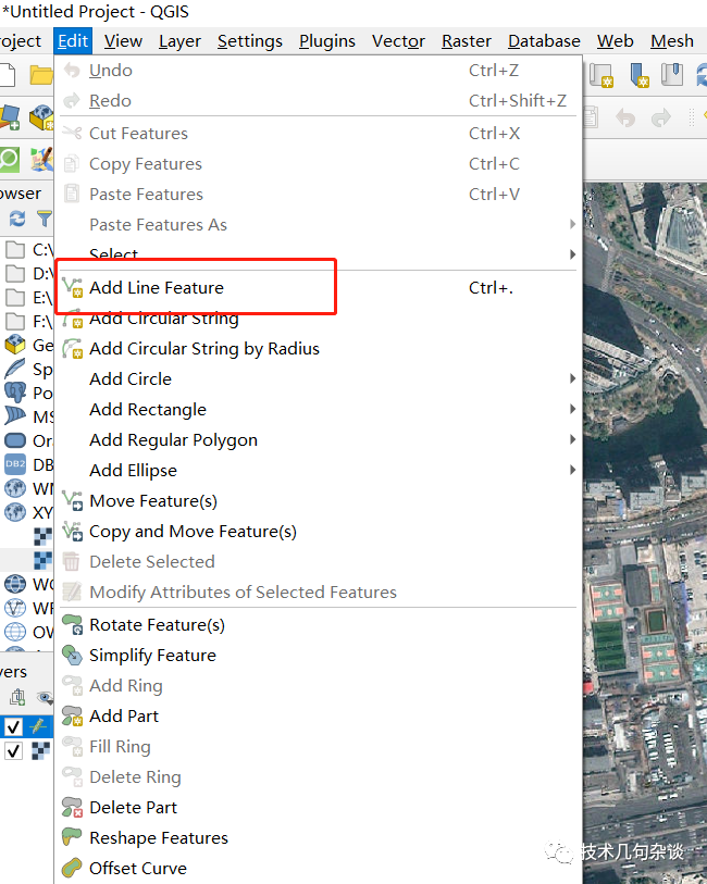 在菜单栏的edit,选择对应的特征对象类型,示例中新建的是线图层,所以要添加line feature,选择完,在地图上进行特征对象的勾画了,勾画完成后,右键结束,添加相应的属性信息;