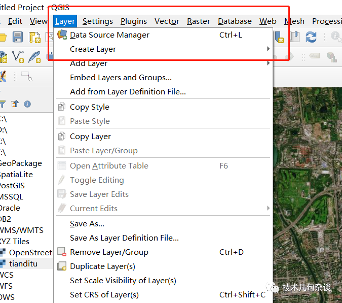 在菜单栏layer上的下拉菜单中,点击 Create Layer,类型选择geopackage或者shapefile都可以,这个根据个人存储选择;