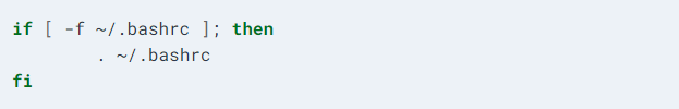 通常,~/.bash_profile 包含的命令来源于 .bashrc 文件中,示例如下: