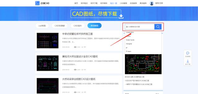 点击下方工具框中的【每日一图】按钮后,进入图库。在这里,我们可以根据需要,在图库页面搜索栏处寻找图纸。