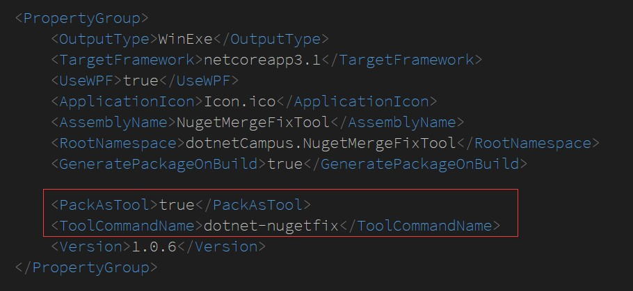 同时包含 GitHub 自动用 Action 打包发布以及整个 dotnet tool 配置的代码请看 dotnet-campus/dotnetCampus.NugetMergeFixTool: 传说博哥的工具 可以用来修复 git 合并的时候将 csproj 合并坏了的问题,也可以用来快速升级 NuGet 库