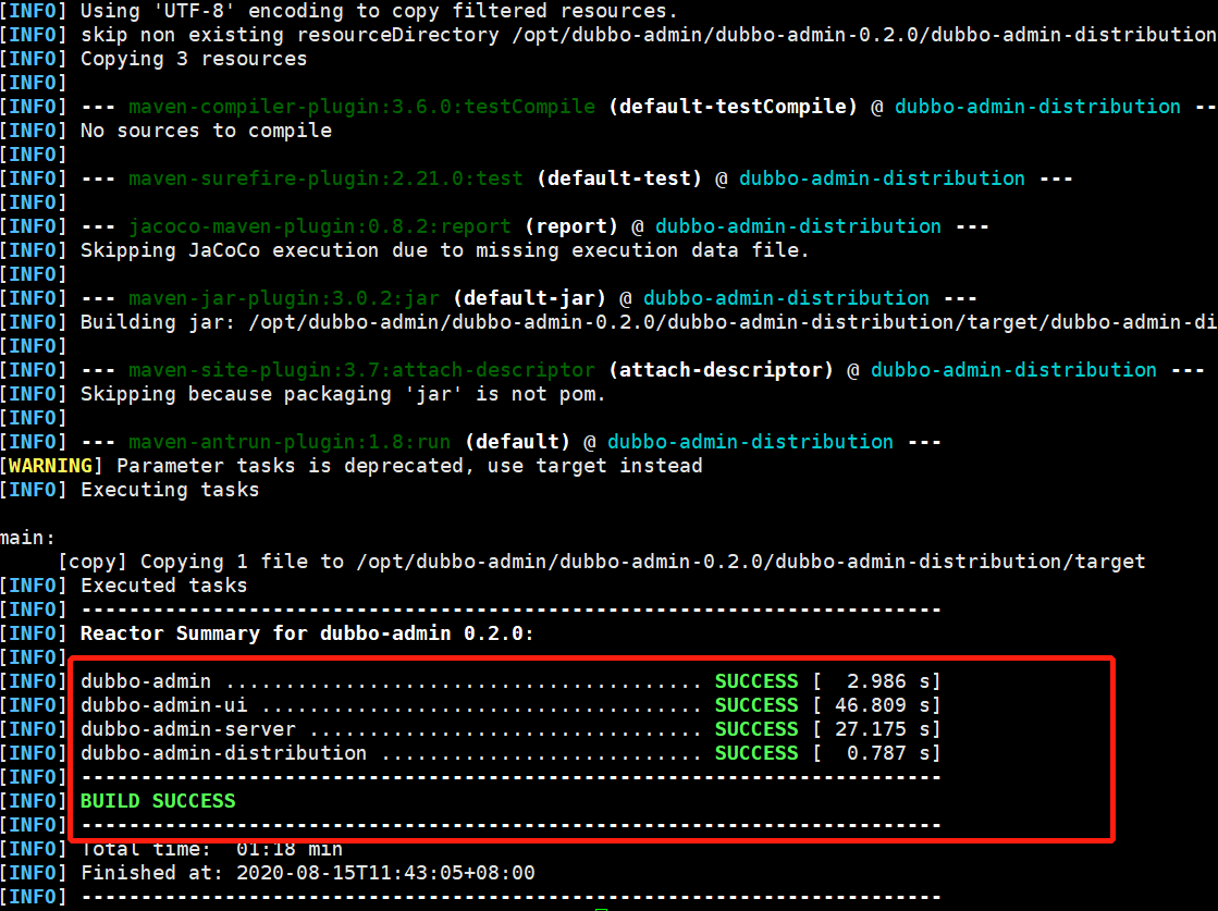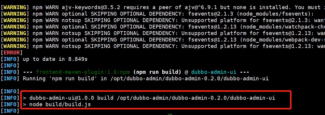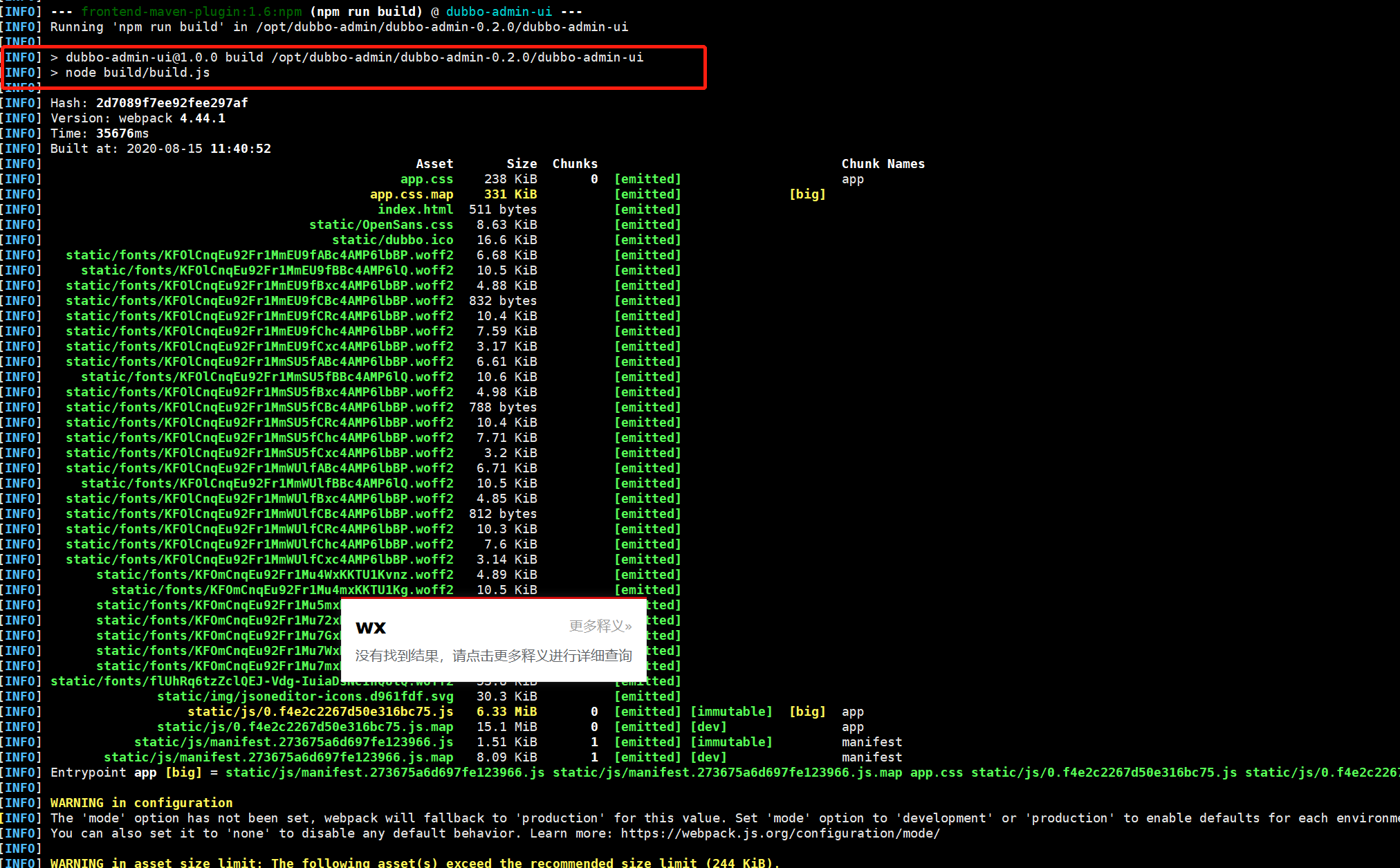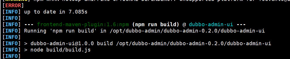 执行至这个位置可能会报 npm run build faild;进入dubbo-admin-ui目录执行 npm run build