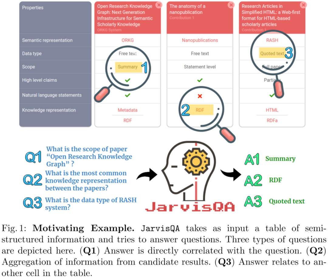 论文简述: 回答包含文本和人造学术知识问题是学术研究的重要组成部分。查询学术知识和检索合适的答案目前几乎不可能,其主要原因是:在发表的文章中包括机器无法操作、模棱两可和结构化的内容。为此本文提出了一个基于BERT的JarvisQA系统,该系统可以检索文章中表格数据中提出的各种不同问题的直接答案。JarvisQA在两个数据集上与其他基线进行了比较,与相关方法相比,JarvisQA的性能提高了两到三倍。